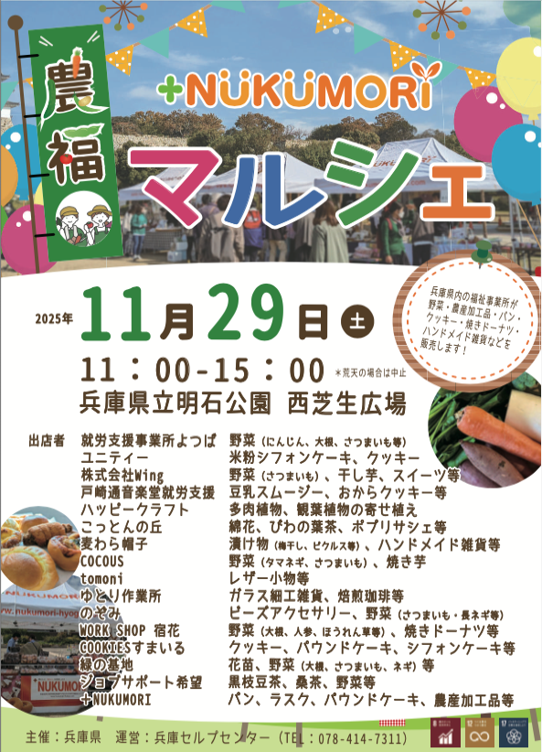 【就労支援】 11/29(土)兵庫県 +NUKUMORI農福マルシェ出店!
