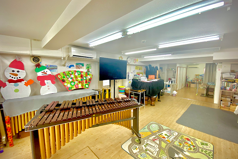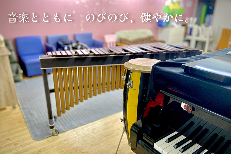 日々の療育活動の中に音楽の時間を設け、マリンバ(木琴)のプロの先生による教室も開催